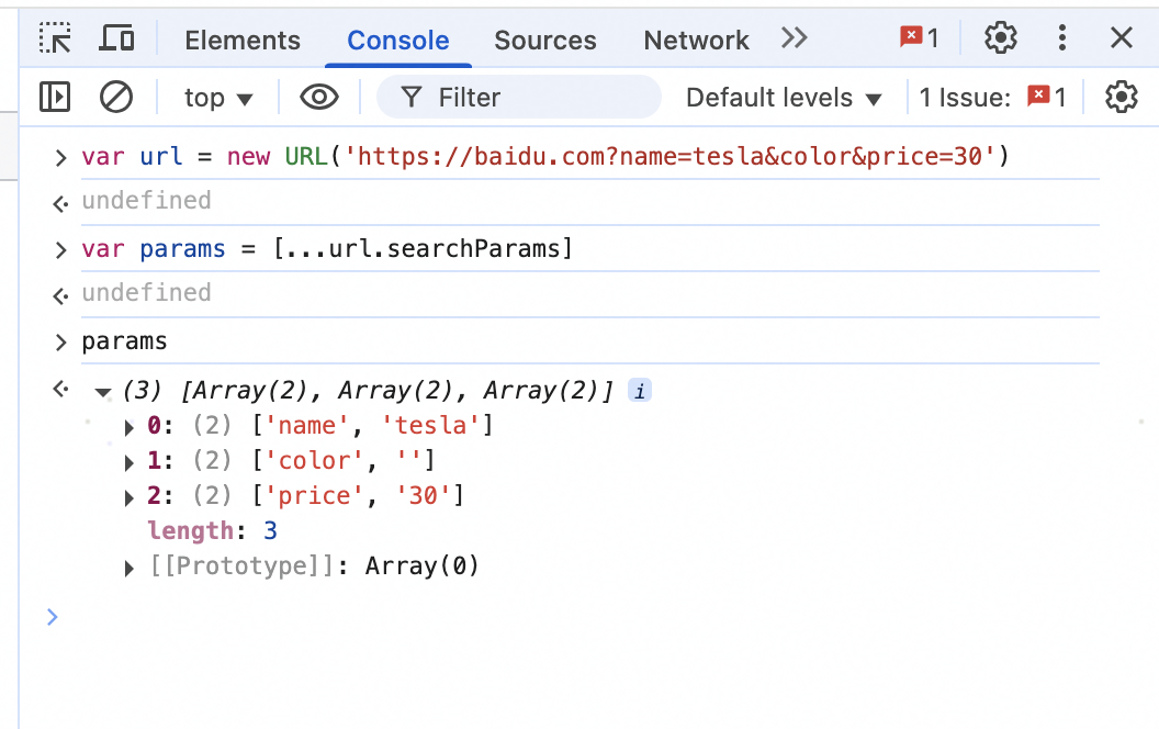 从我的测试结果来看,浏览器、Nodejs 都遵循了规范,对于查询参数中没有 = 号的查询参数解析为空字符串,以下是测试截图: