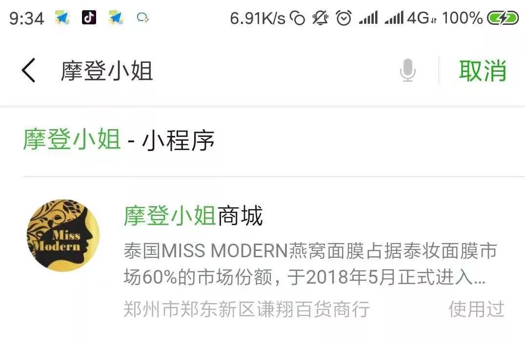 公司就是miss modern 人家公司都翻译的是摩登小姐,本来是要求是要用英文的但是考虑到咱们国家大家普遍的接受能力所以决定用中文的,我们这个只是个买化妆品的小程序而已并没有其他的意思。