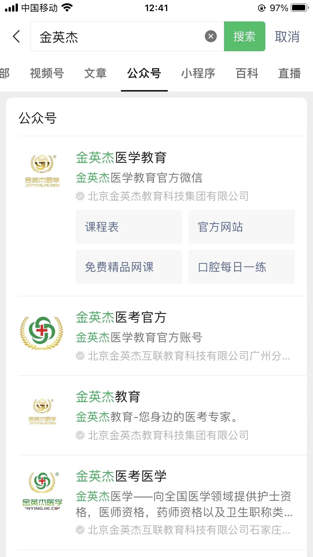 账号[金英杰医考官方]自从2月28日开始,在微信搜索简称(金英杰)或者全称(金英杰医考官方)均无法被搜索到。在此之前均为收到任何违规通知;是否为误屏蔽了?恳请官方进行解除屏蔽,恢复正常流量。
