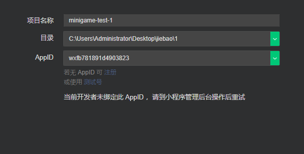 测试小游戏 目前我没有注册小游戏账号
