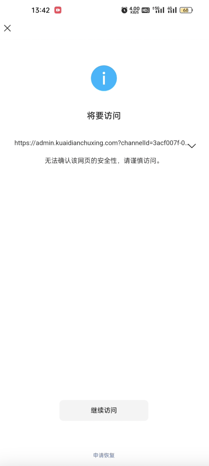 域名已备案https://admin.kuaidianchuxing.com,部分用户又出现扫码小程序普通二维码识别后提示不安全。