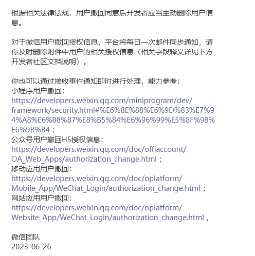 已处理,删除用户信息。为什么还收到微信团队邮件通知??