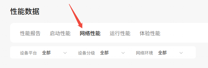 “页面切换耗时”和“接口请求耗时”是不同的统计维度,“接口请求耗时”请参考【性能数据-网络性能】版块。