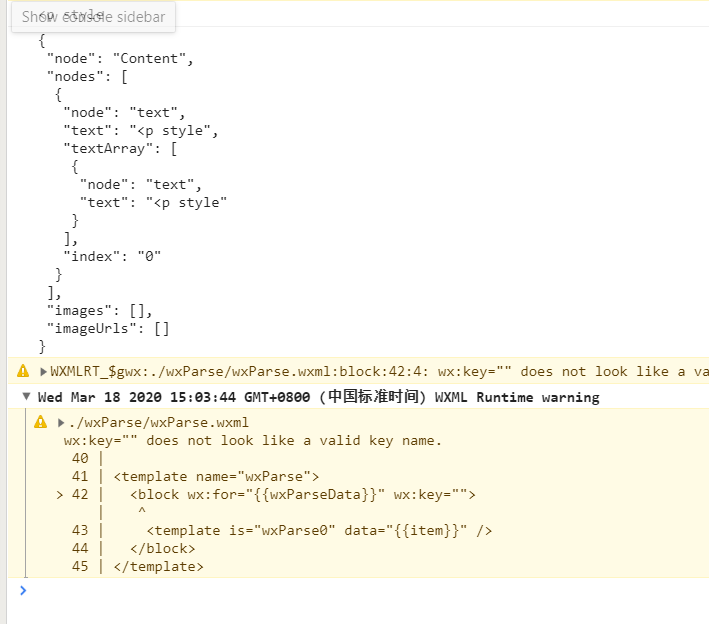 我吐了,用了wxParse插件控制台满屏的警告!!!!!