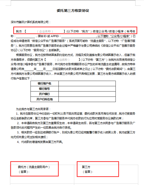 还有一个问题想请教,选择“其他企业账户”入口,填写时需提交委托协议。委托协议中委托方,应该填财略还是如望达呢?因为小程序主体归属已经是如望达的,但是委托方写如望达的话,第三方也是如望达。主体填财略的话,小程序又已经不是财略的了。