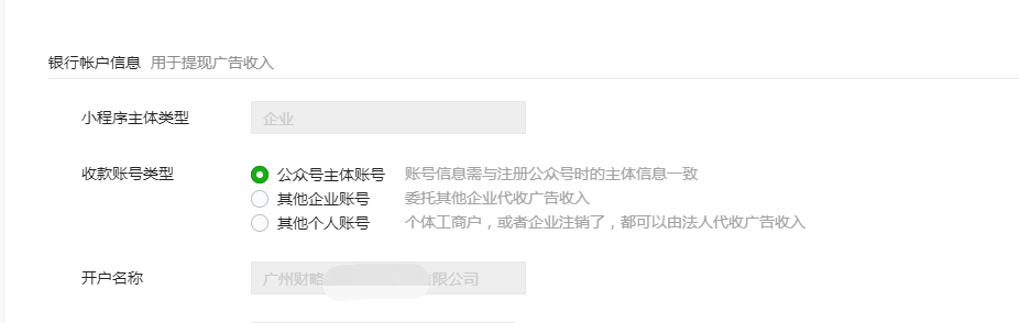 现想要将流量主结算账户修改为“广州如望达XXX公司”,进入流量主账号信息变更页面,收款账号选择【公众号主体账号】