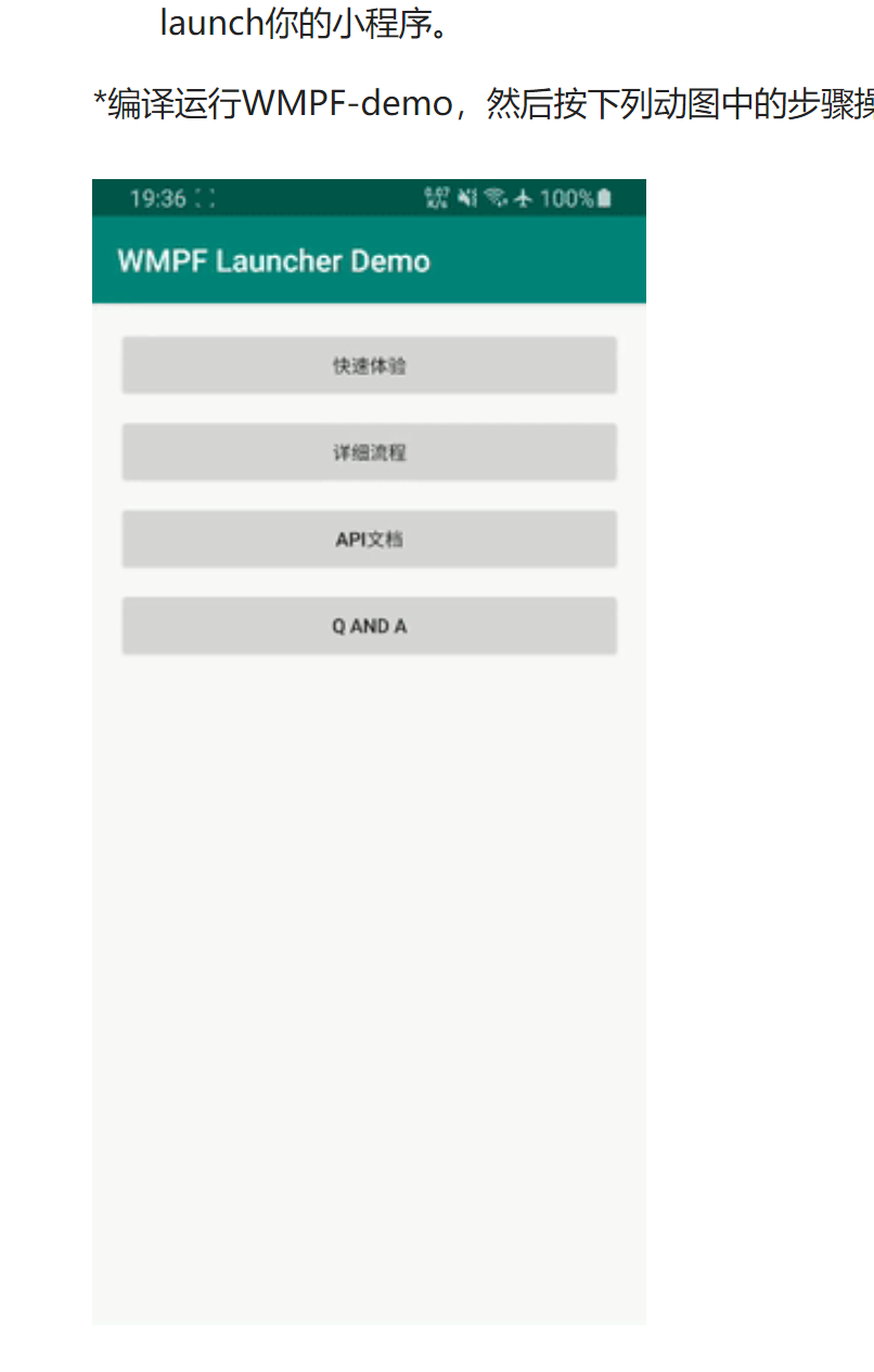 你好,解决了吗?我的已经启动小程序成功了,但不知道小程序内怎么和app通信(小程序内wmpf无法获取 wmpf is not defined)