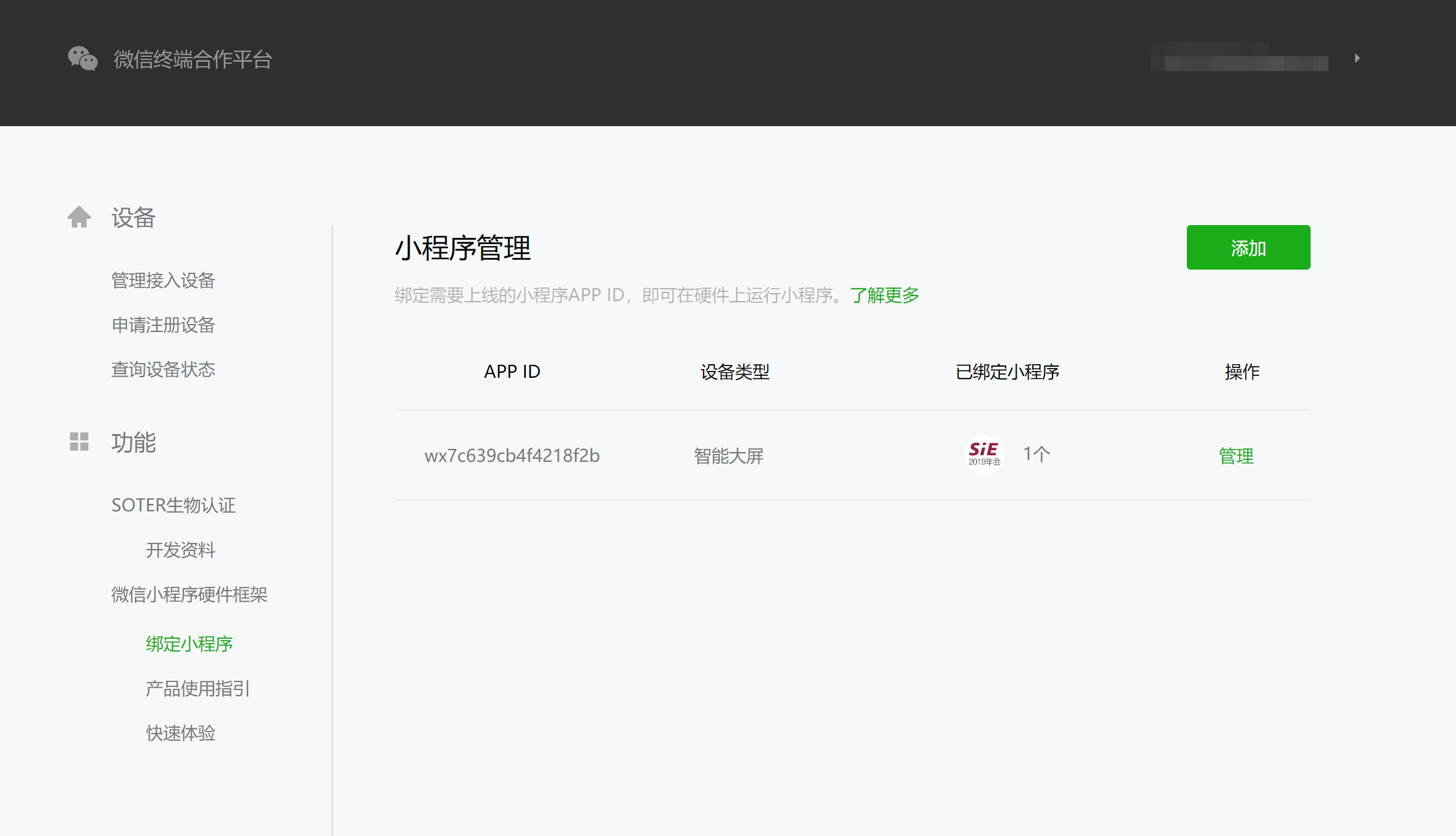//获取当前设备的序列号//运用WMPF专有接口(JSAPI)获取。,档链接如下//https://github.com/wmpf/wmpf_demo_external/wiki/WMPF%E4%B8%93%E6%9C%89%E6%8E%A5%E5%8F%A3(JSAPI)//用法如下:(必须加上try catch,非硬件框架拉起的小程序无wmpf对象)try {let res = wmpf.getDeviceSerialNumberSync()console.log(res.serialNumber)//aed34567-11-vfed001} `catch (e) {console.log(e)}你好,小姐姐有没有操做文档或者流程能分享一下不?官方的不太明确,