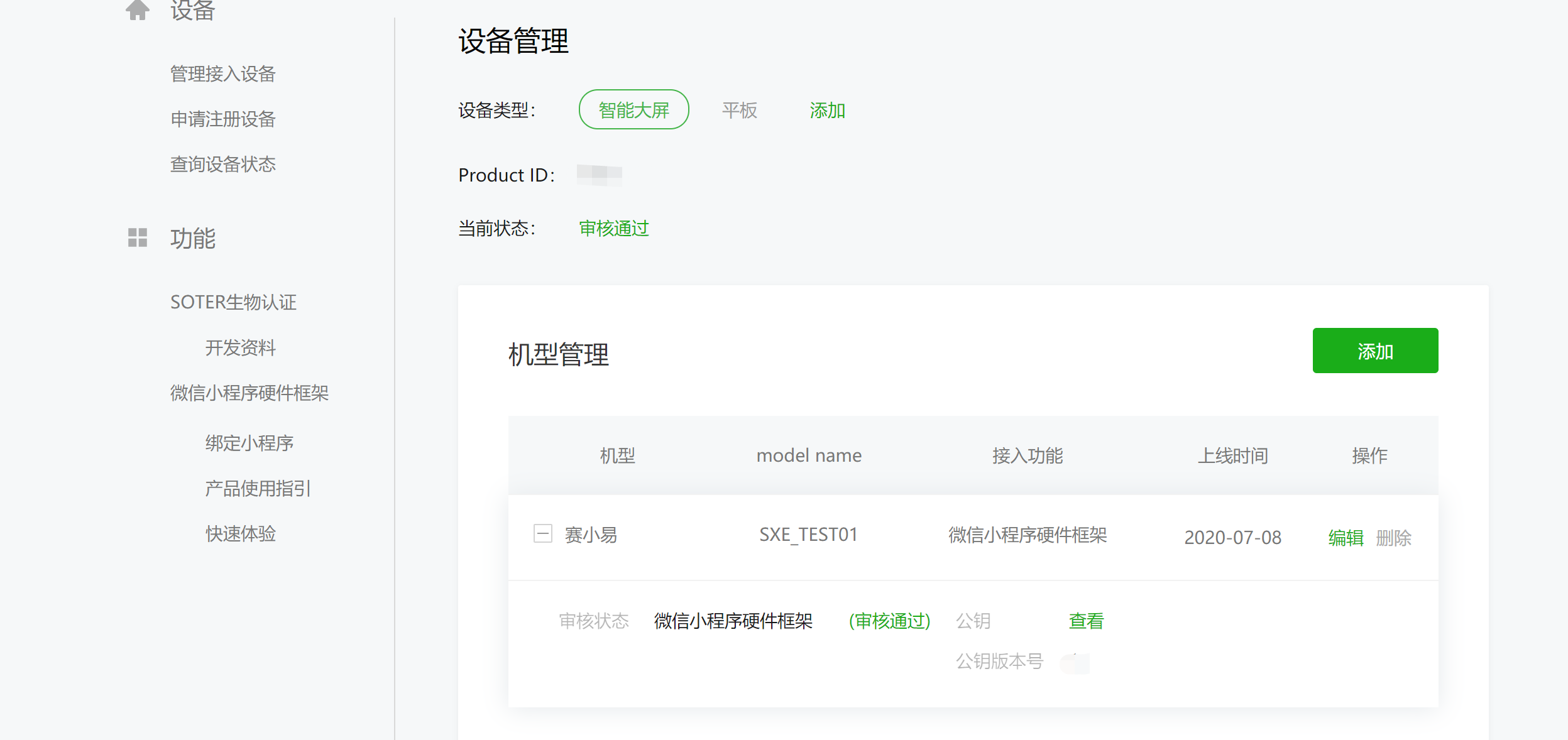 另外我这边测试机用的是华为平板MatePad Pro MRX-AL09,然而在终端平台管理接入设备,用的却是智能大屏的Product ID和智能大屏机型管理的公钥版本号作为key-version,不知跟这个有没有关系。