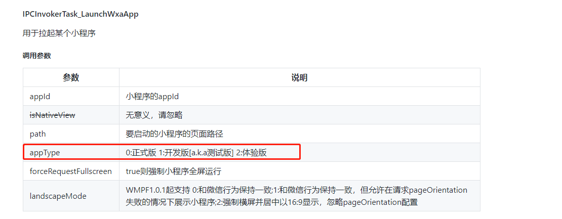 appType具体参考:https://github.com/wmpf/wmpf_demo_external/wiki/Service%E4%B8%8EClient%E7%9A%84IPC%E4%BA%A4%E4%BA%92%E5%8D%8F%E8%AE%AE