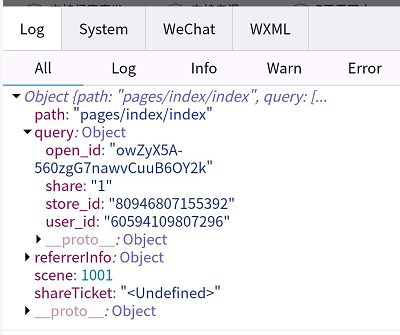 第一次点击分享卡片,onLaunch中options.query里只有scence字段
