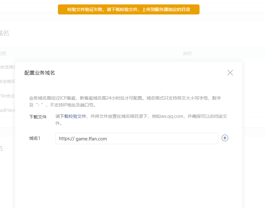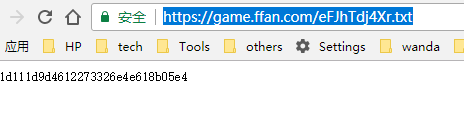 如图,校验文件为txt的,地址为https://game.ffan.com/eFJhTdj4Xr.txt 希望帮忙确认下