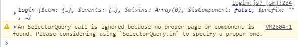 VM2604:1 An SelectorQuery call is ignored because no proper page or component is found. Please considering using `SelectorQuery. in ` to specify a proper one. |