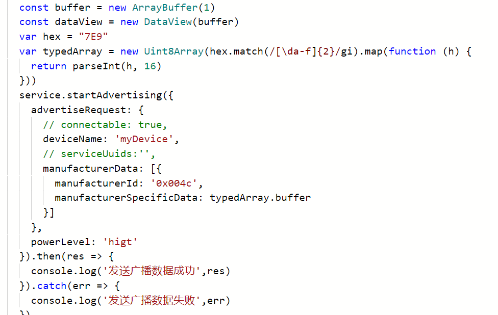 BLEPeripheralServer.startAdvertising发送广播数据,如何建监听?数据发送成功后只返回ok