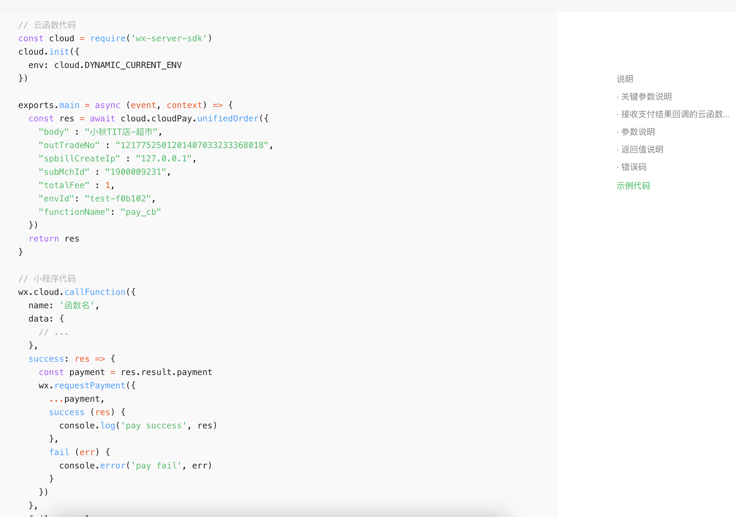 在小程序A中,通过 wx.navigateToMiniProgram 进入小程序B的支付界面,金额由小程序A传递过来,然后进行支付,云函数报错。