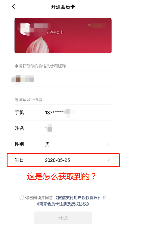 题主有解决吗?我看有很多小程序能自动获取到生日的