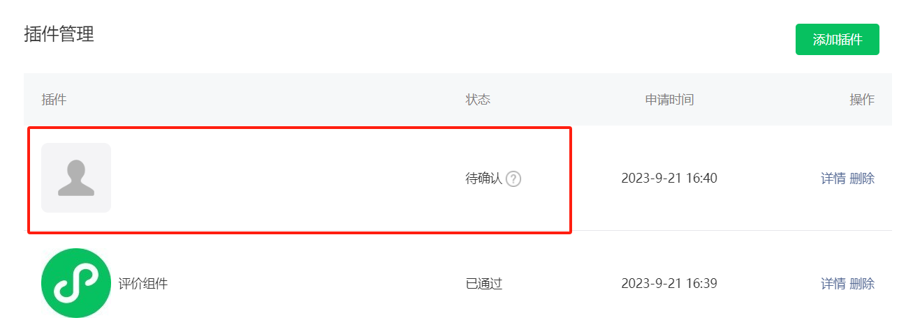 添加评价发布组件,出现一个插件的组件,点击添加后,需要审核?