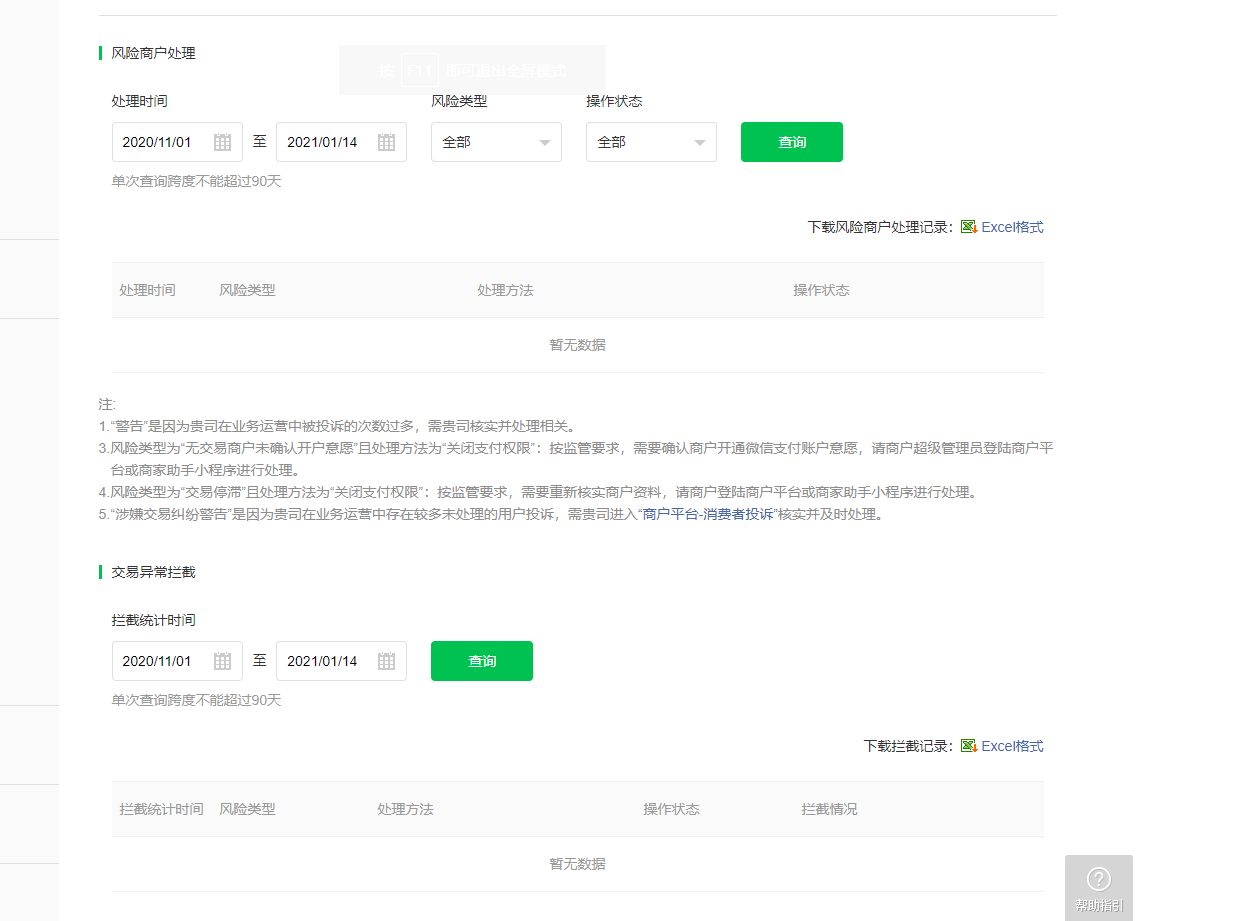 由于商户号涉嫌实施交易异常,部分交易被拦截,请你保持业务模式正常,并登陆商户平台->「账户中心」->「违约记录」查看交易异常拦截数据,如对拦截有疑异,可以在页面下方提交申诉材料,提交资料1-5个工作日内留意审核结果。