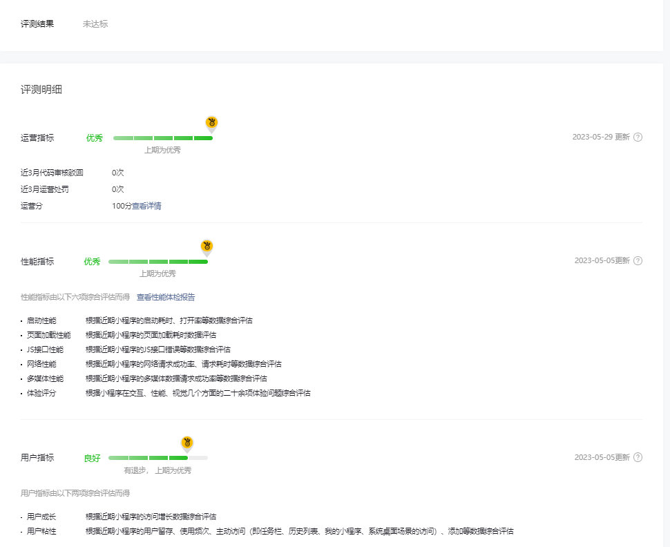 不明白为啥小程序综合评测未打标,有没有官方出来回答下?APPID:wx5e4e67fa47cfe658