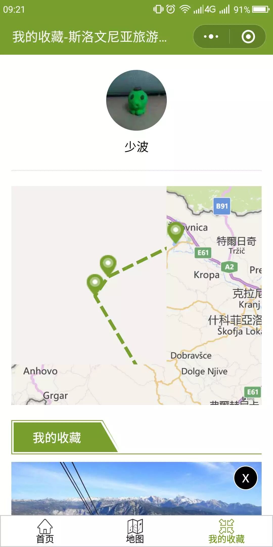 const app = getApp() Page({ data: { "markers" : [{ "iconPath" : "http://data.lvyou168.cn/slovenia/marker.png" , "id" : "m19" , "latitude" : 46.2383333, "longitude" : 13.8125, "width" : 22, "height" : 29, "callout" : { "color" : "#78A02E" , "content" : "沃格尔山\nVogel" , "display" : "BYCLICK" , "padding" : 6 } }, { "iconPath" : "http://data.lvyou168.cn/slovenia/marker.png" , "id" : "m18" , "latitude" : 46.28410887411788, "longitude" : 13.858078324634448, "width" : 22, "height" : 29, "callout" : { "color" : "#78A02E" , "content" : "博希尼湖\nLake Bohinj" , "display" : "BYCLICK" , "padding" : 6 } }, { "iconPath" : "http://data.lvyou168.cn/slovenia/marker.png" , "id" : "m17" , "latitude" : 46.363598, "longitude" : 14.0938053, "width" : 22, "height" : 29, "callout" : { "color" : "#78A02E" , "content" : "布莱德湖\nLake Bled" , "display" : "BYCLICK" , "padding" : 6 } }, { "iconPath" : "http://data.lvyou168.cn/slovenia/marker.png" , "id" : "m8" , "latitude" : 45.7825175005828, "longitude" : 14.2036798059485, "width" : 22, "height" : 29, "callout" : { "color" : "#78A02E" , "content" : "波斯托伊纳溶洞\nPostojnska Jama" , "display" : "BYCLICK" , "padding" : 6 } }], "polyline" : [{ "points" : [{ "id" : "m17" , "latitude" : 46.363598, "longitude" : 14.0938053 }, { "id" : "m18" , "latitude" : 46.28410887411788, "longitude" : 13.858078324634448 }, { "id" : "m19" , "latitude" : 46.2383333, "longitude" : 13.8125 }, { "id" : "m8" , "latitude" : 45.7825175005828, "longitude" : 14.2036798059485 }], "dottedLine" : true , "color" : "#78A02E" , "width" : 5 }], "lng" : 14.0938053, "lat" : 46.363598 }, onLoad: function () { wx.createMapContext( 'map' , this ).includePoints({ points: this .data.markers, padding: [60, 20, 60, 20], }) }, }) |