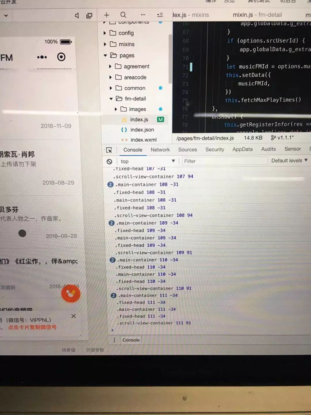 const query = wx.createSelectorQuery() query.select('.main-container').boundingClientRect(res => { console.log('.main-container', e.scrollTop, res.top) this.setData({ //节点的上边界坐标 headFixed: res.top <= 0, }) }).exec() query.select('.fixed-head').boundingClientRect(res => { console.log('.fixed-head', e.scrollTop, res.top) this.setData({ //节点的上边界坐标 headFixed: res.top <= 0, }) }).exec() query.select('.scroll-view-container').boundingClientRect(res => { console.log('.scroll-view-container', e.scrollTop, res.top) this.setData({ //节点的上边界坐标 headFixed: res.top <= 0, }) }).exec() |