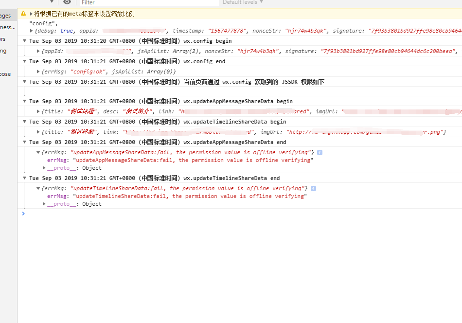 用1.4版本之前的api调试分享页面api,开发者工具显示正常,分享成功,但是在手机上分享不是自定义的内容显示。