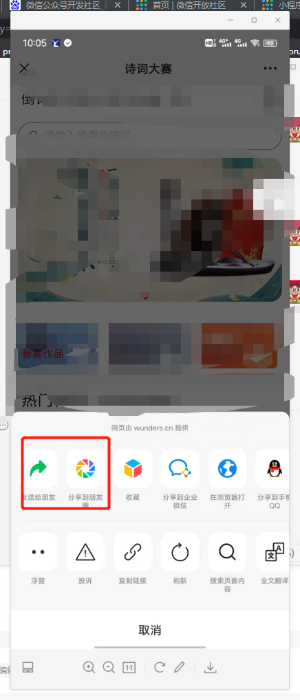 2.从之前分享的链接又有 发送给朋友 和 分享朋友圈按钮图标显示