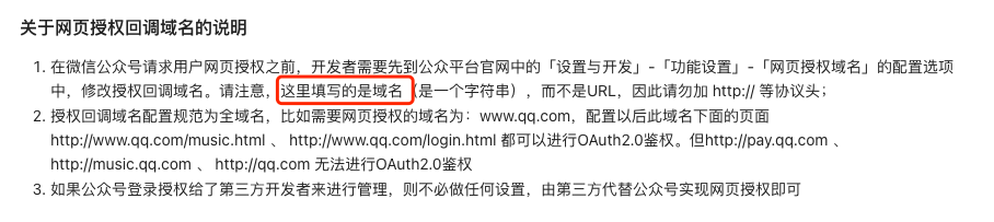 网页授权域名填写域名即可,不需要把后面的路径带上。