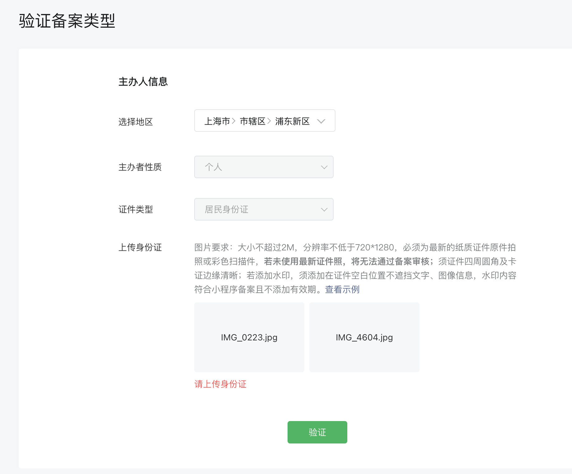 已经按照要求调整了身份证图片的大小,点击验证按钮提示:请上传身份证;无法获取更多的帮助信息,不知道是哪里出现了问题。