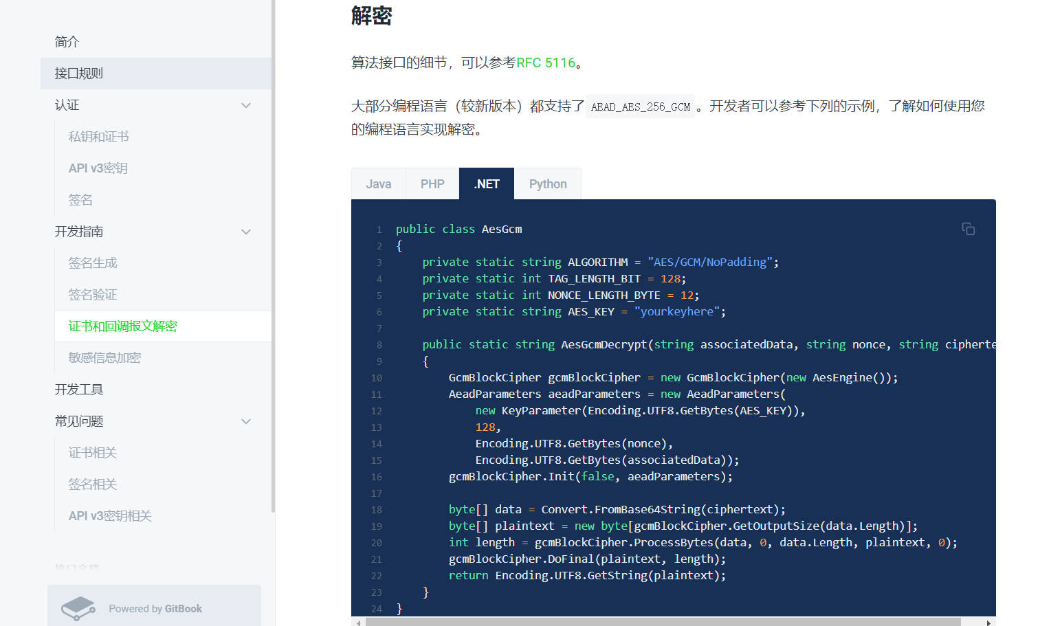 据资料,从 .NET Standard 2.1 起 才支持 GCM 模式。完全不支持在 .Net framework 各版本中。