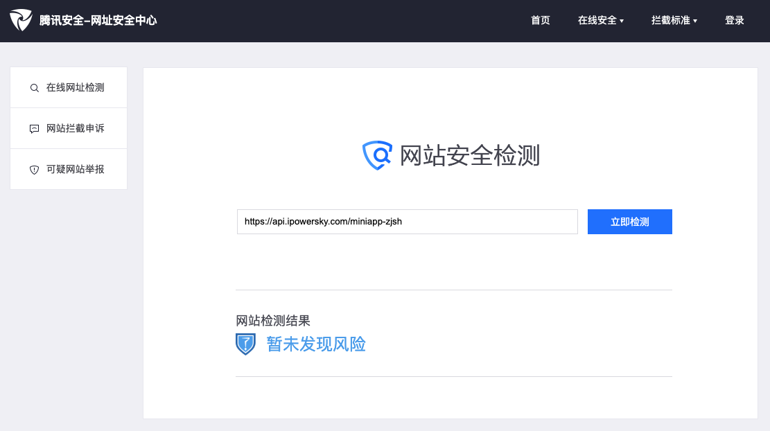 拦截的链接:https://api.ipowersky.com/miniapp-zjsh?deviceName=123