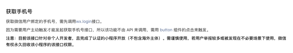 参考文档:https://developers.weixin.qq.com/miniprogram/dev/framework/open-ability/getPhoneNumber.html