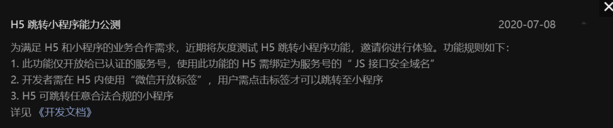 问题:微信最近开放了H5跳转小程序的能力功能,支持从H5页面点击跳转至小程序,请问若该H5页面放在企业微信内打开,同样支持点击跳转小程序吗?