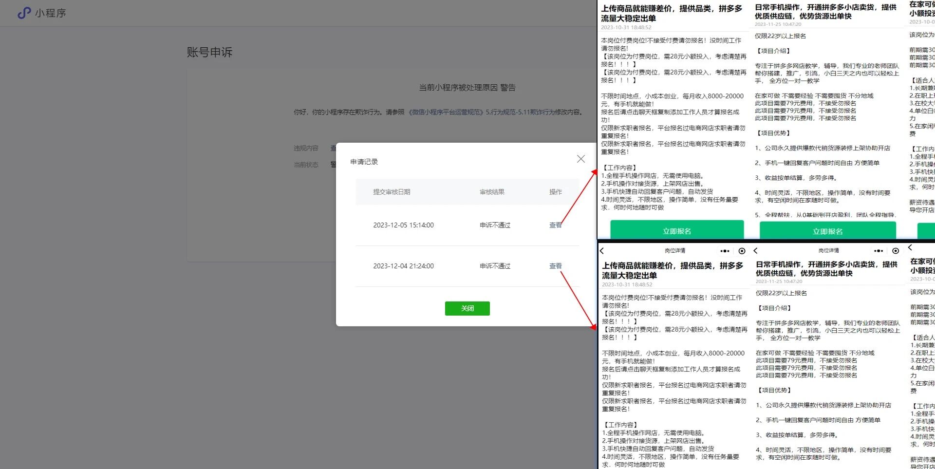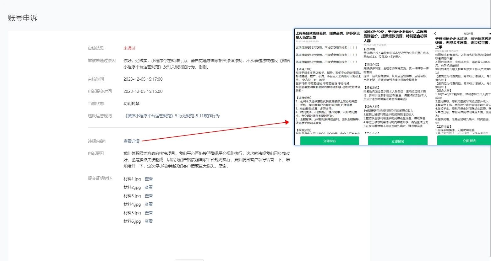 昨天申诉了一遍,申诉不通过,的确是内容还有不正确的,今天该整治的整治该下架的下架,中午又发起了一遍申诉,直接两分钟就回复申诉不通过,然后附了一张昨天审核结果的图?