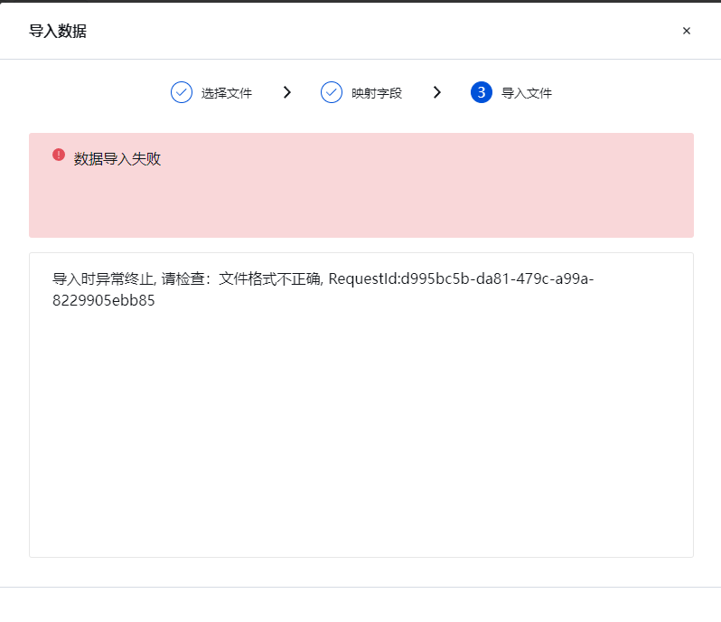 数据模型导入xlsx文件数据时一直报错,之前导入都可以,我用到导出模板文件重新导入也报同样的问题。