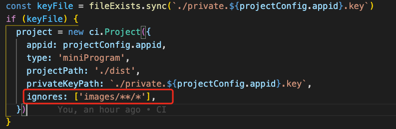 ci上传需要手动忽略images文件,之前我配置在project.config.json中(CI工具不会读取)