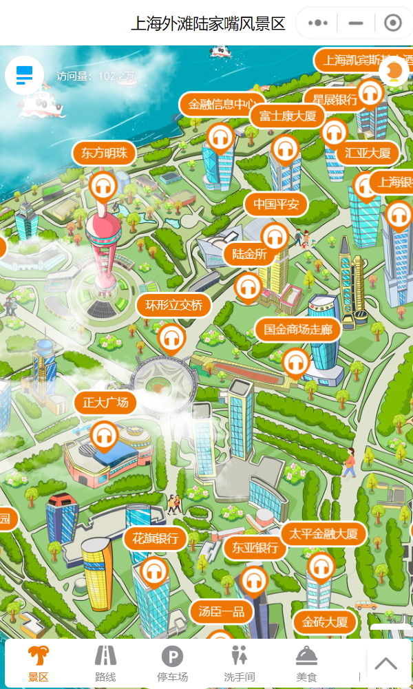 这里的背景图片是会自动移动的,也可以手动左右上下移动或者双指缩小放大,然后点击不同的地方,会显示各自的地方信息;