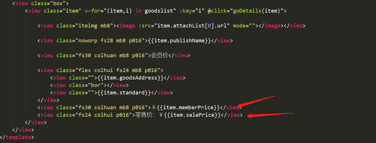 不知道为什么数据显示为null,使用调试模式就能正常显示,但你不停刷新有时又会有会员价,零售价和会员价都是一个对象里的,没有做过其他处理,零售价完全正常,会员价就显示null