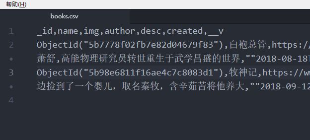 注意是查不到一张表的项中保存的另一张表的项的id,如上图的book字段保存的是一本书的id,上图的每一条记录表示一个章节,将书的id保存到记录里辨别属于哪本书。结果从本地的mongodb导入到小程序云开发数据库后不能根据book字段查询了