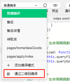 开发者工具里编译模式选择通过二维码编译