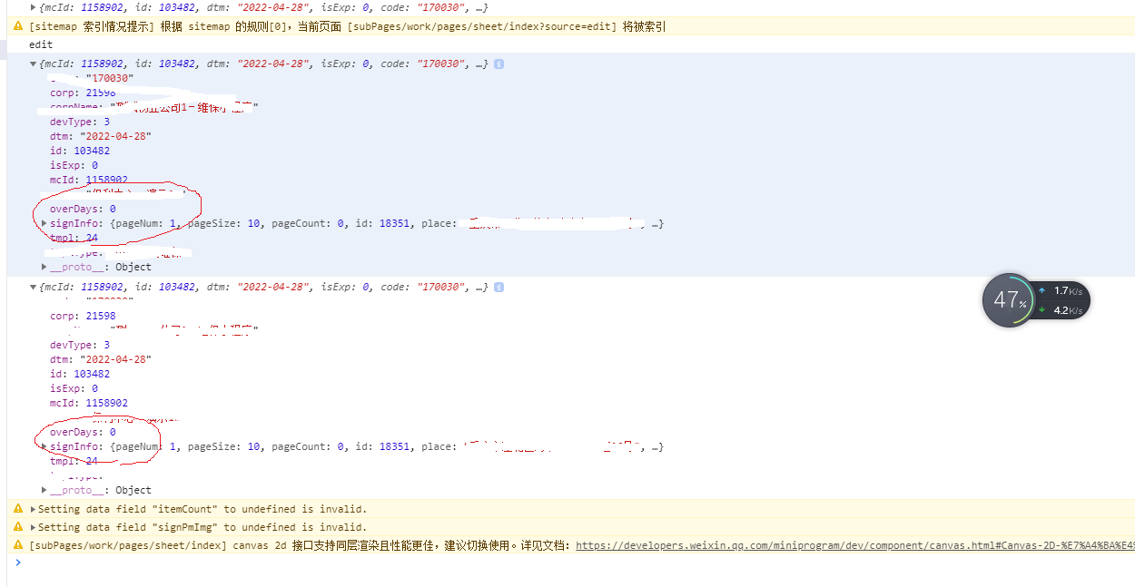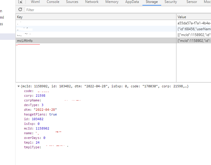 但是在开发工具调试器上,storage中,发现当前缓存的字段mcLiftInfo中signInfo属性并没有更新赋值。然后在销毁页面的钩子函数中,获取缓存信息mcLiftInfo中同样没有signInfo属性——这就导致了后续流程出现问题