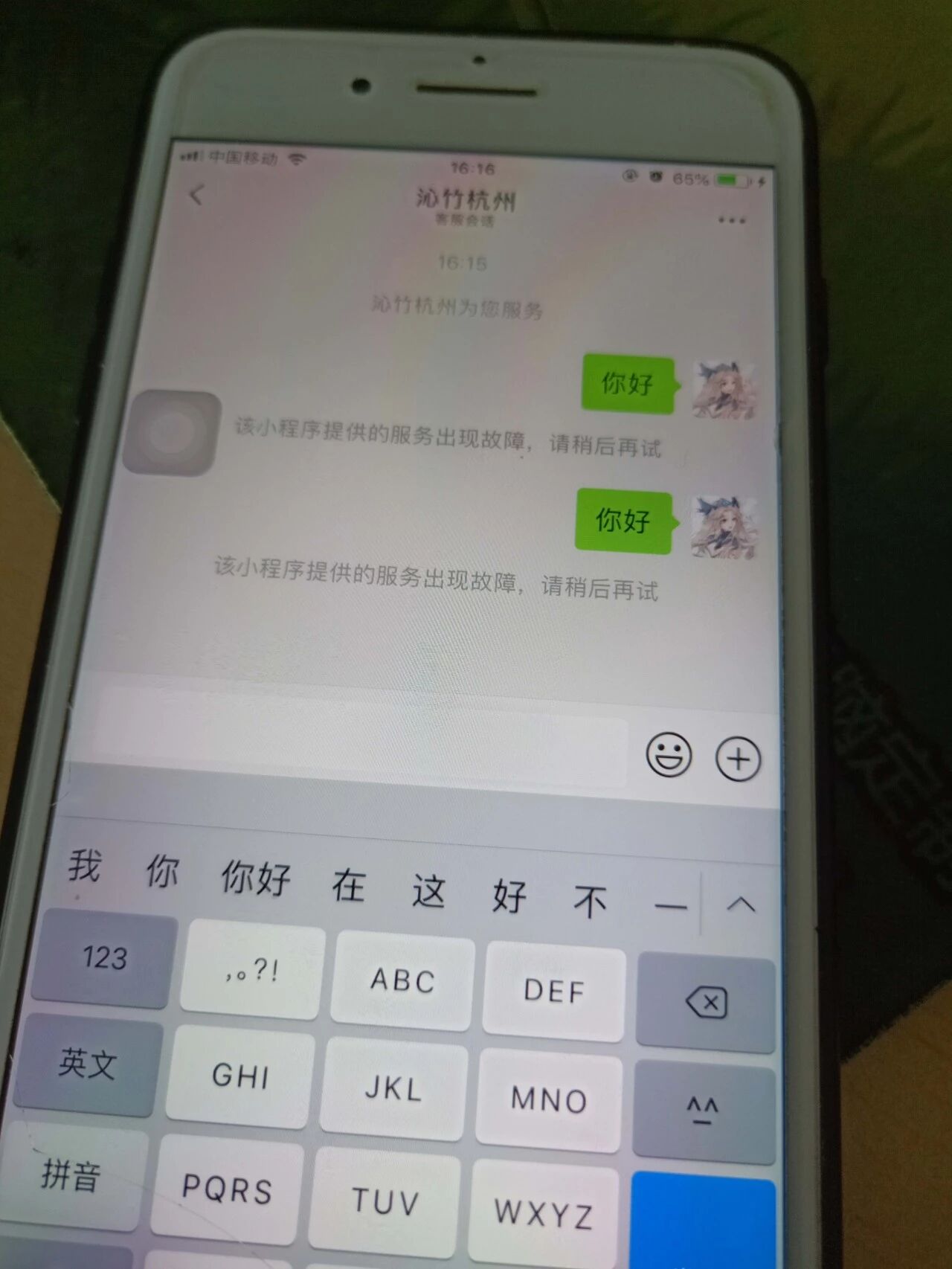 小程序客服消息对话框出现以下问题:苹果手机发消息时提示"该小程序提供的服务出现故障,请稍后再试",而安卓手机发消息时无该提示,两者的消息,对方客服均无法正常收到,第一次遇到这种现象,能否帮忙协助处理一下,谢谢!