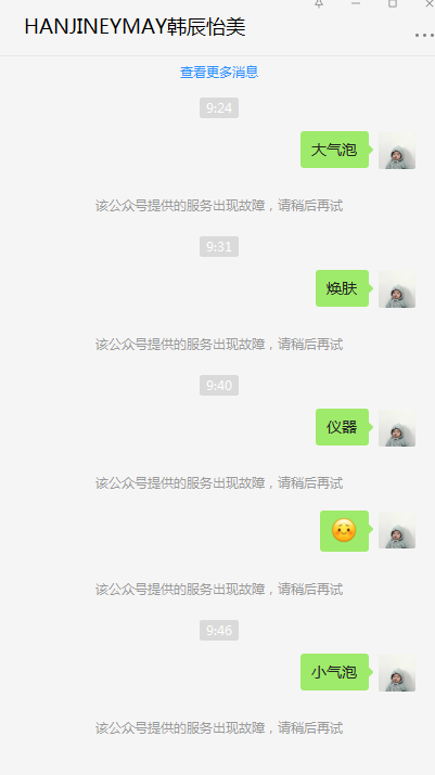 手机端和电脑端的发消息时提示"该小程序提供的服务出现故障,请稍后再试"