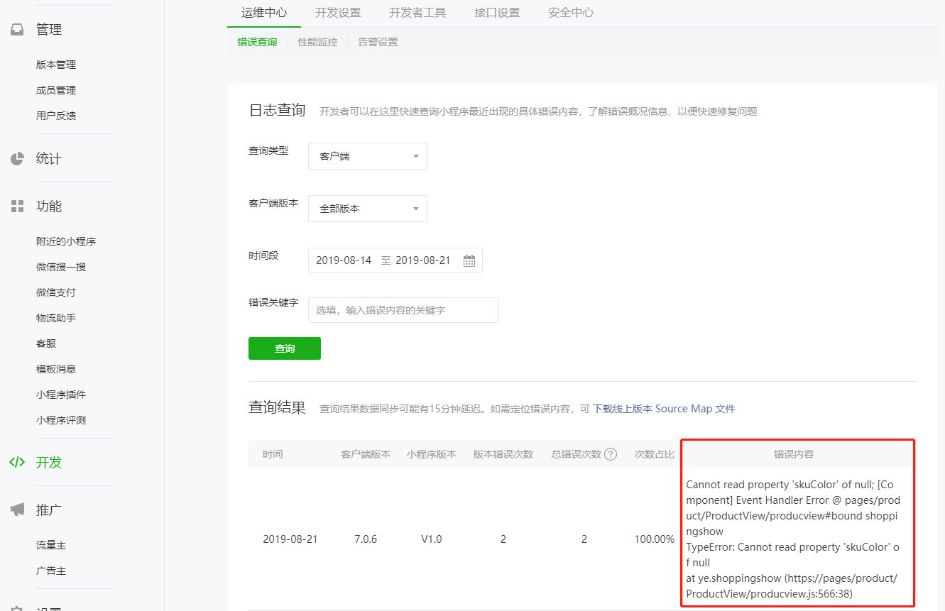 “通用报警” 部分,这里有点尴尬是公众号的文档,但是小程序也适用的。