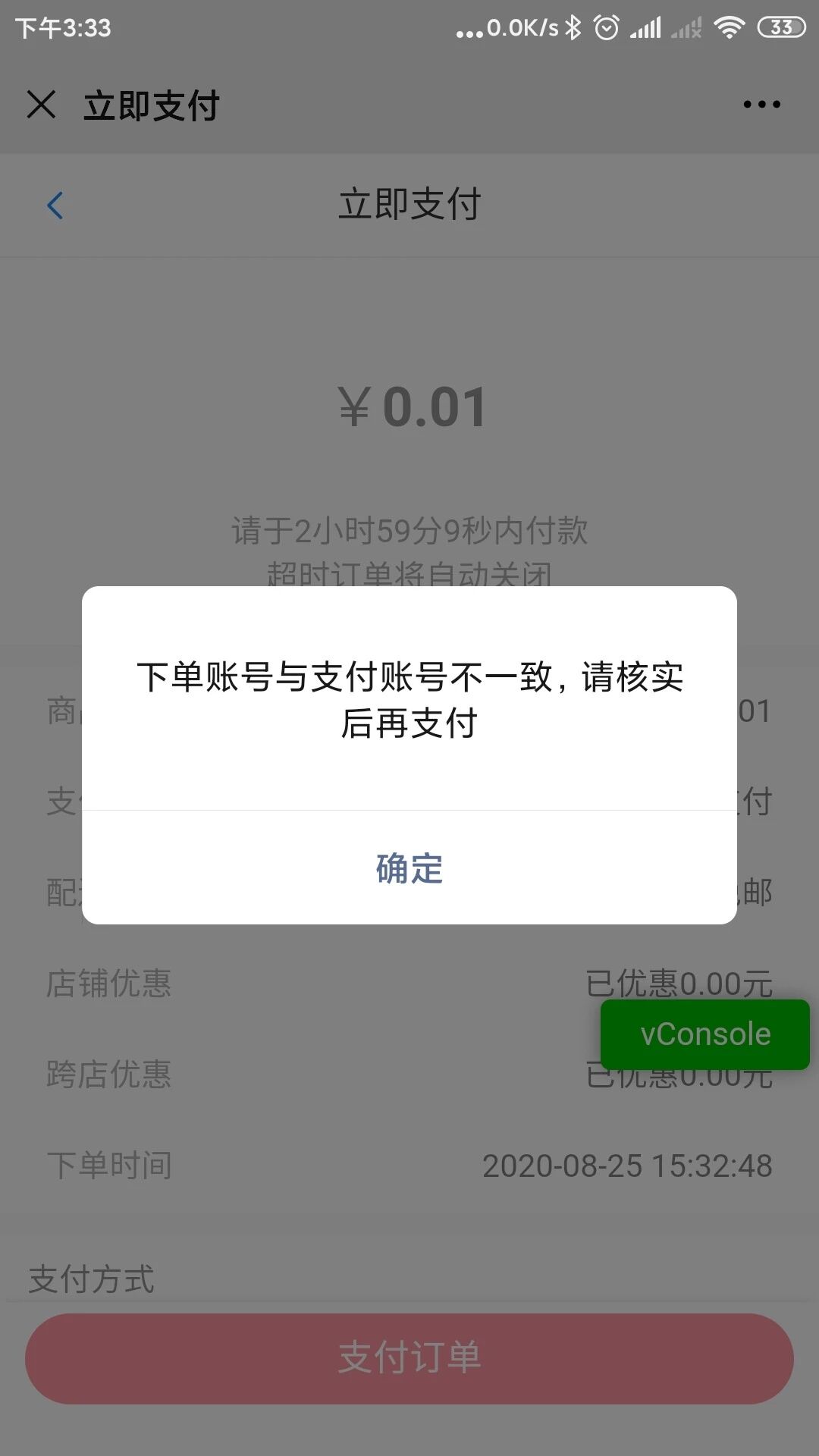 下单账号和支付账号不一致,是用h5支付时,用一个手机下单,另一个手机支付拉起微信的时候报出的错误,