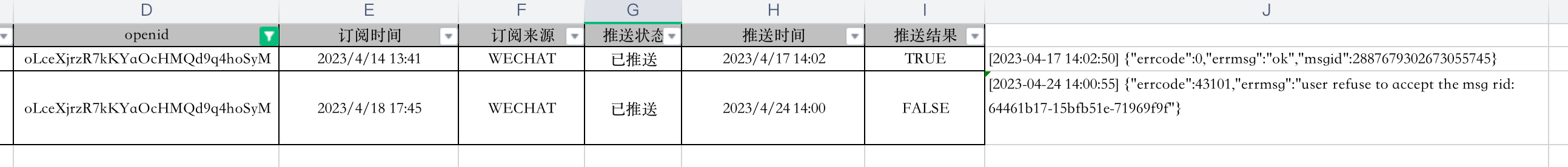 用户2023/4/18再次订阅,在2023/4/24推送失败,返回的rid如截图
