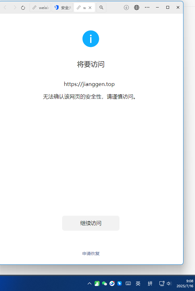 你好,经核实,域名【jianggen.top】下的链接【https://jianggen.top/atMarket/2e6de901d1dc4394ba70a43306722bb0.html?dd=K48rcy 】的内容违反《微信外部链接内容管理规范》的第19条“恶意对抗类内容”,属于严重违规,无法恢复微信内直接访问的服务。