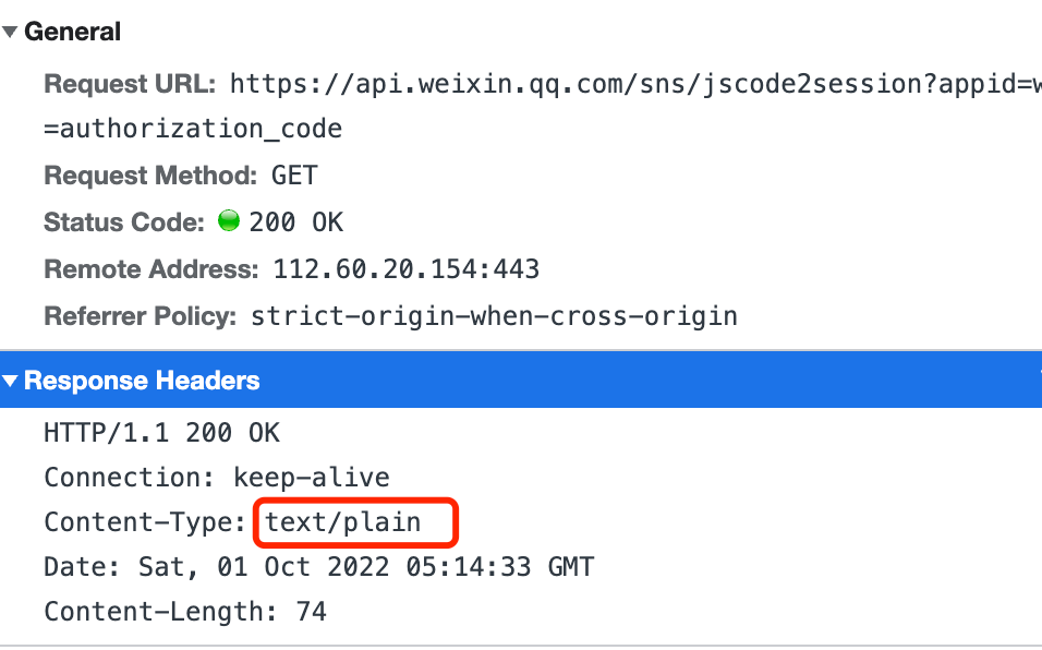 auth.code2Session返回的值的数据类型不是json结构而是text/html是怎么回事