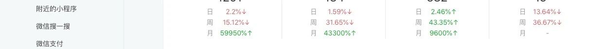 红色数据是下降,绿色数据是上升,数据好的时候一片绿,有点难以理解。。