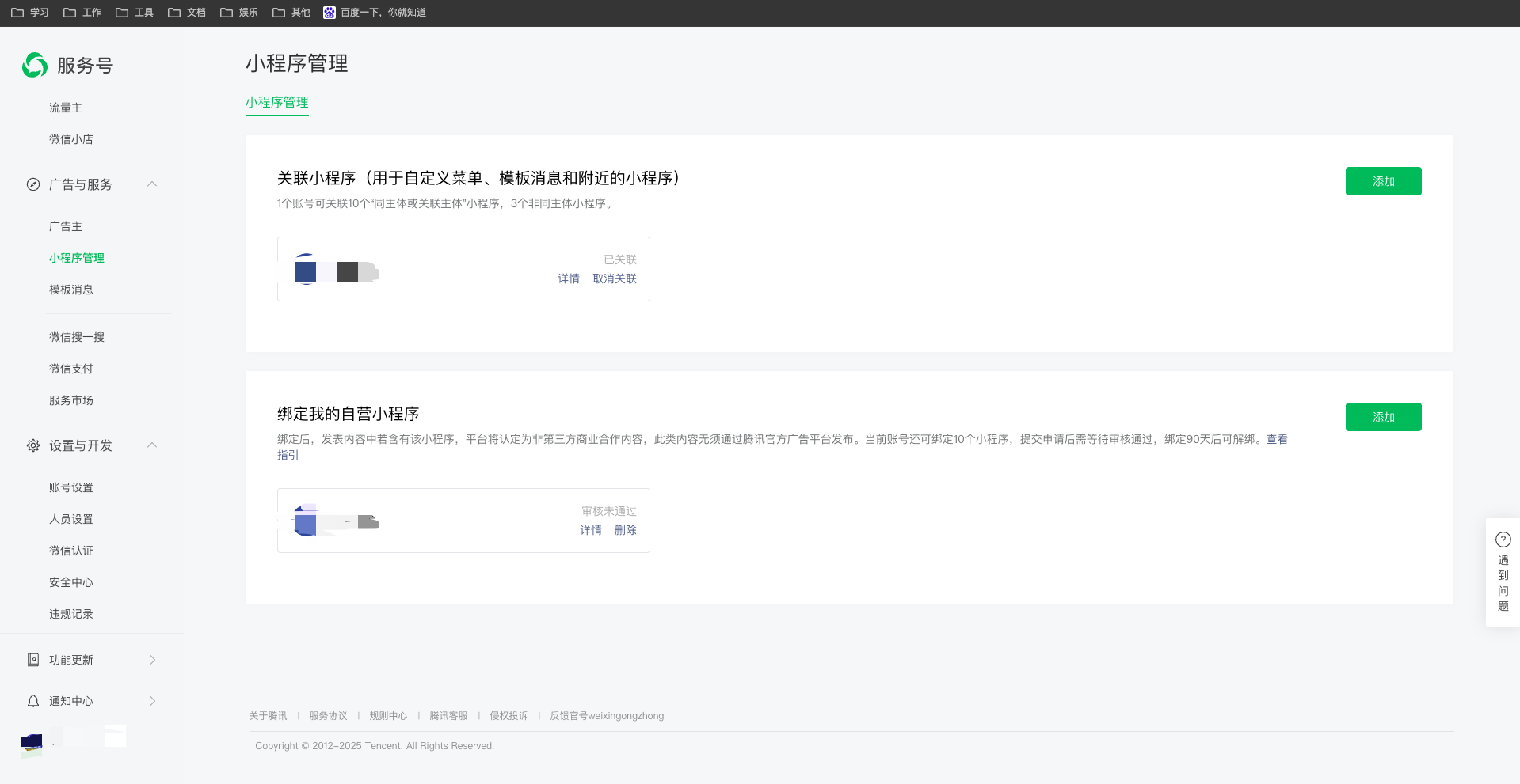 需要访问公众号后台绑定小程序才是关联主体。